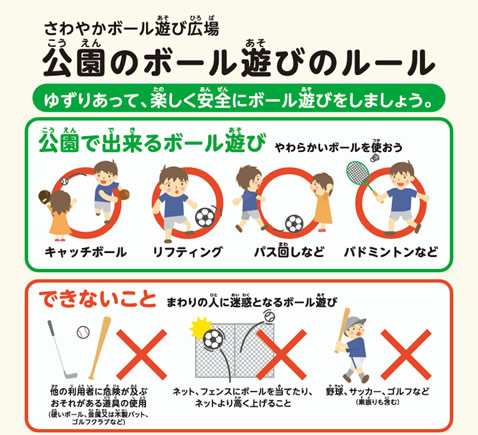| 公園を利用する際は、公園でのマナーを守り、また公園で禁止されている行為はしないこと。 |